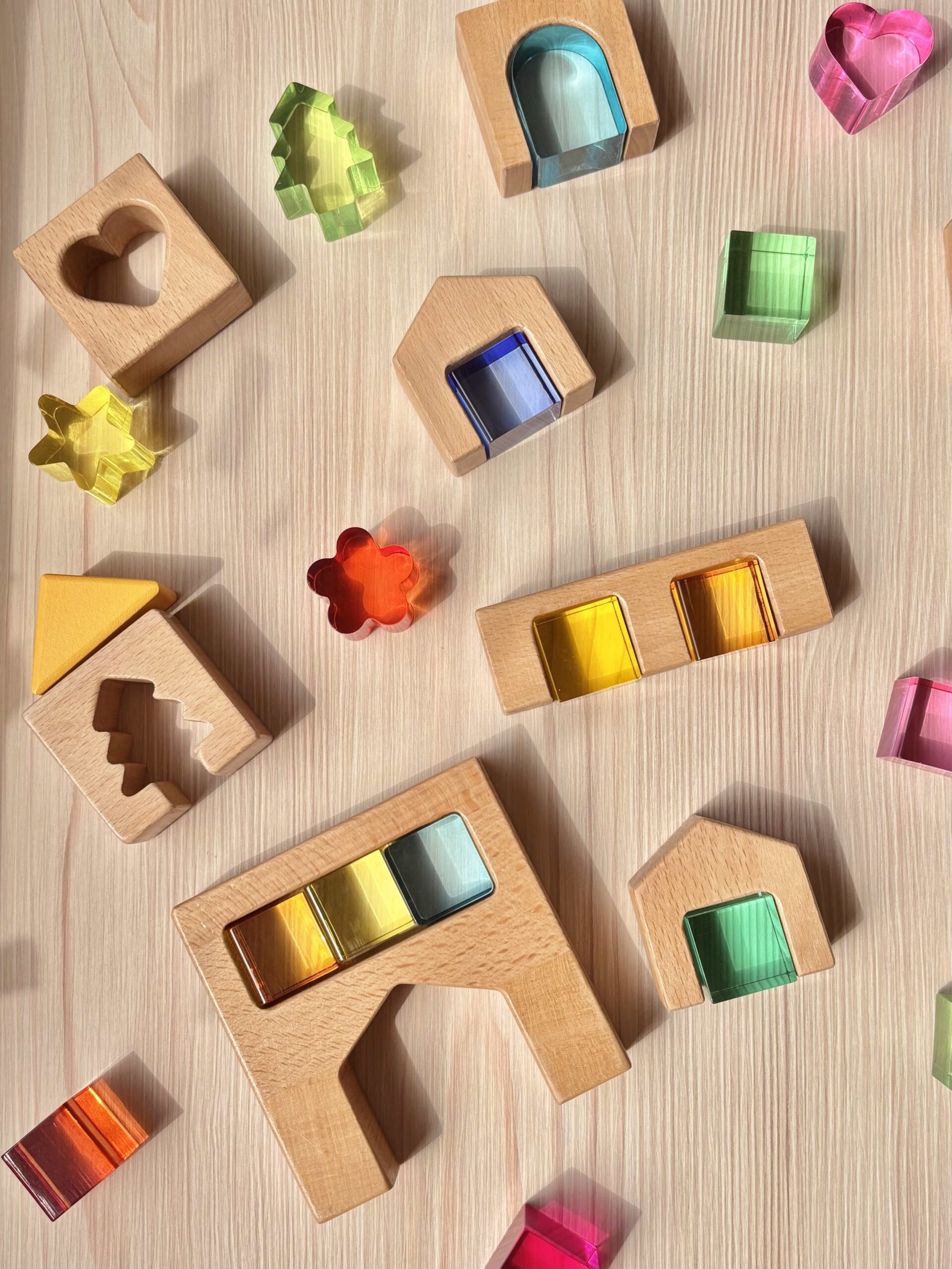 純手工打磨而成的積木、圓潤且無毛刺